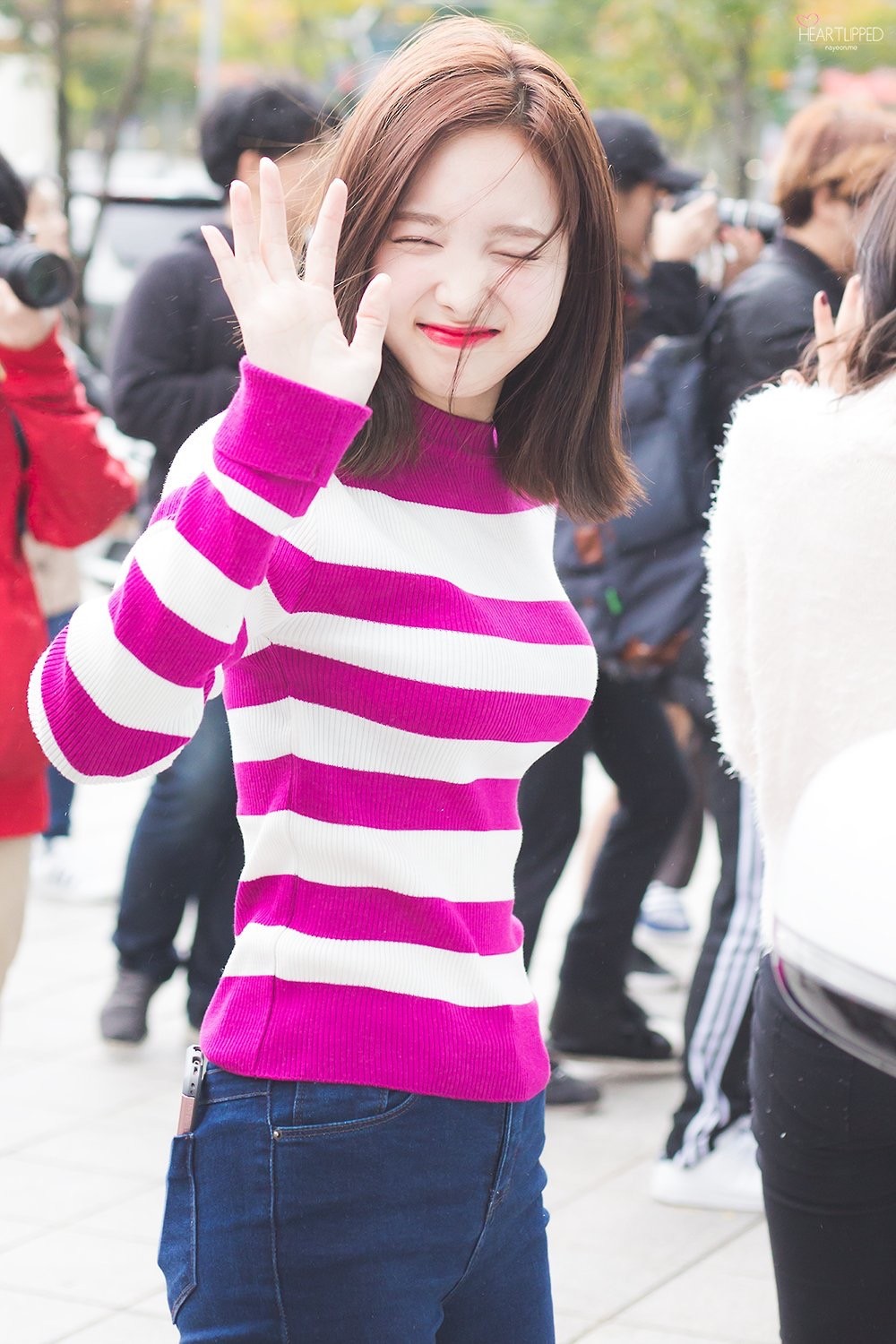 TWICE 트와이스, トゥワイス ทไวซ์ Nayeon 나연 娜璉ナヨン นาย็อน, Jeongyeon(Jungyeon)정연 定延 ジョンヨンจ็องย็อน, Jihyo 지효 志效 ジヒョ ซะนะ, Sana 사나(サナ) 湊崎 紗夏 ซะนะ ,Momo 모모 (モモ)平井 桃 โมะโมะ, Mina 미나 (ミナ) 名井 南 ซะนะ ,Dahyun 다현 多賢 ダヒョン ดาฮย็อน, Chaeyong 채영 彩瑛 チェヨン ซะนะ, Tzuyu 쯔위 周子瑜 ツウィจื่อ-อฺวี๋